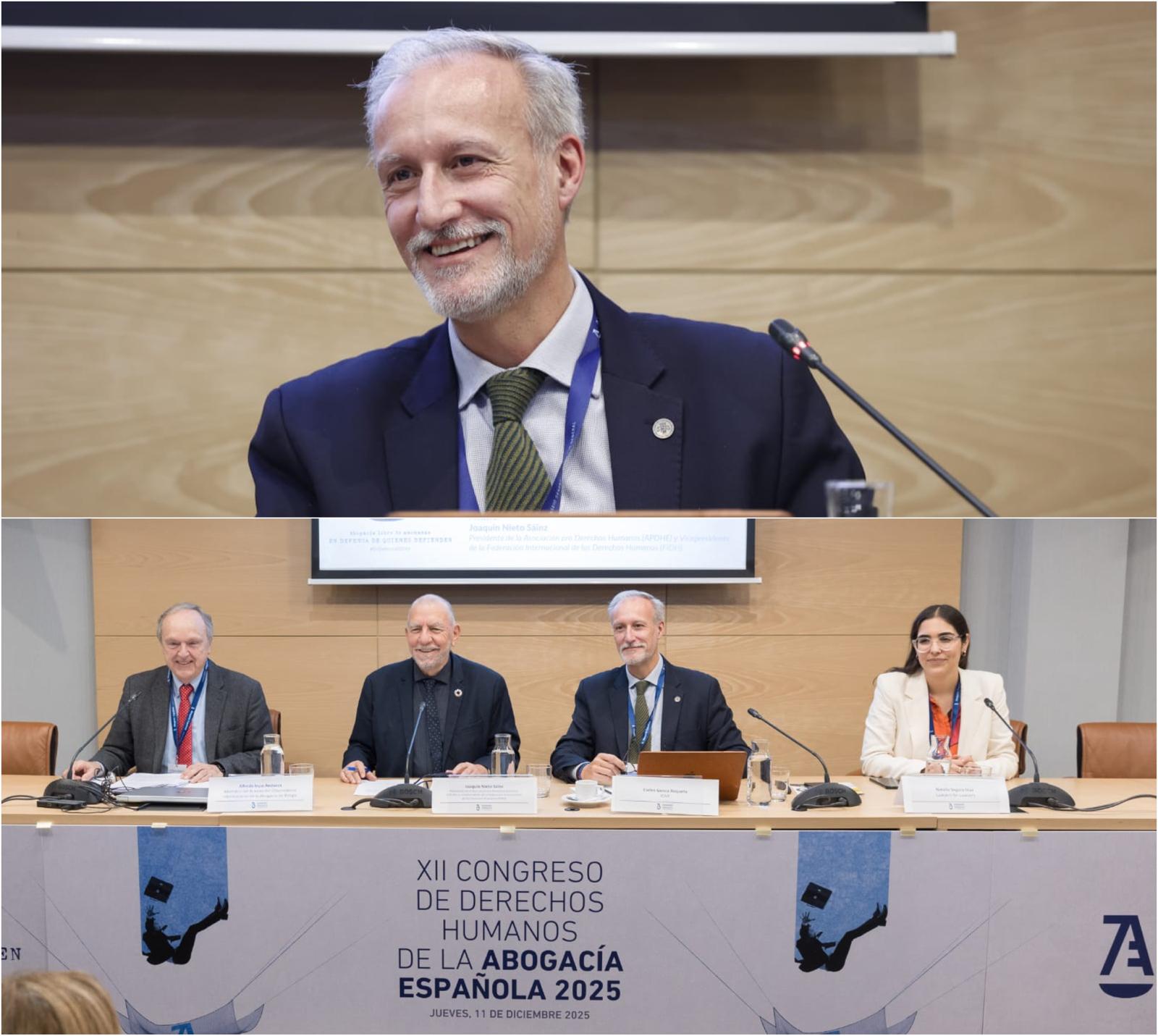 En aquest context, Carles Garcia Roqueta ha intervingut a la taula “Iniciativas de protección a la abogacía”, juntament amb Alfredo Irujo Andueza, membre del Bureau de l’Observatori Internacional de l’Advocacia en Risc, i Natalia Segura Díaz, de Lawyers for Lawyers, moderada per Joaquín Nieto Sáinz, president de l’Associació Pro Drets Humans d’Espanya (APDHE) i vicepresident de la FIDH. Durant la seva intervenció, el secretari de l’ICAB ha parlat sobre les iniciatives de protecció de l’advocacia i ha presentat l’Observatori dels Drets de les Persones de l’ICAB, posant en valor el compromís del Col·legi amb la defensa dels drets humans i amb la protecció de l’exercici lliure i independent de la professió.