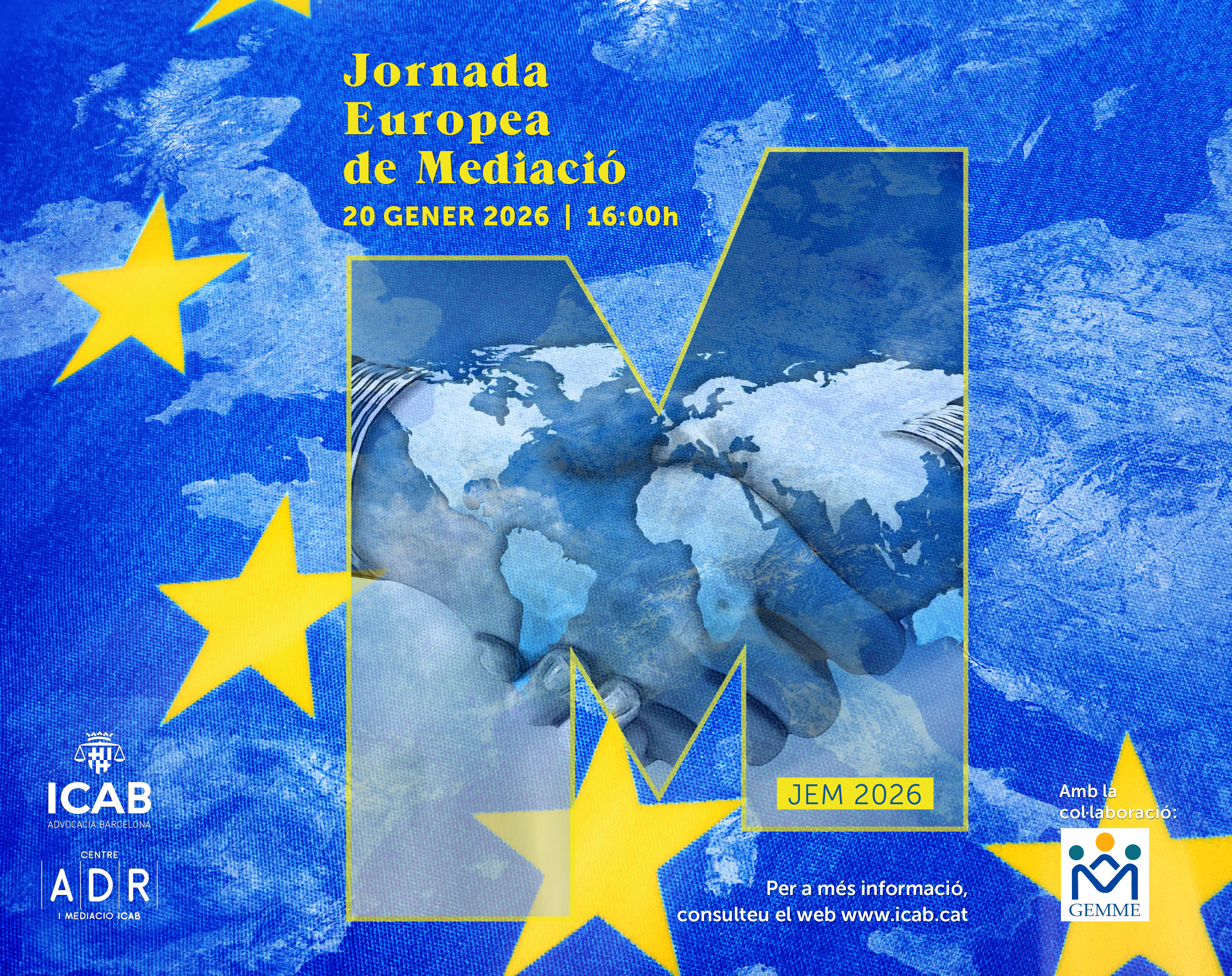 La Jornada Europea de Mediació se celebrarà el dimarts, 20 de gener de 2026, a les 16h, a la seu del Col·legi de l’Advocacia de Barcelona, amb motiu del Dia Europeu de la Mediació, que es commemora cada 21 de gener