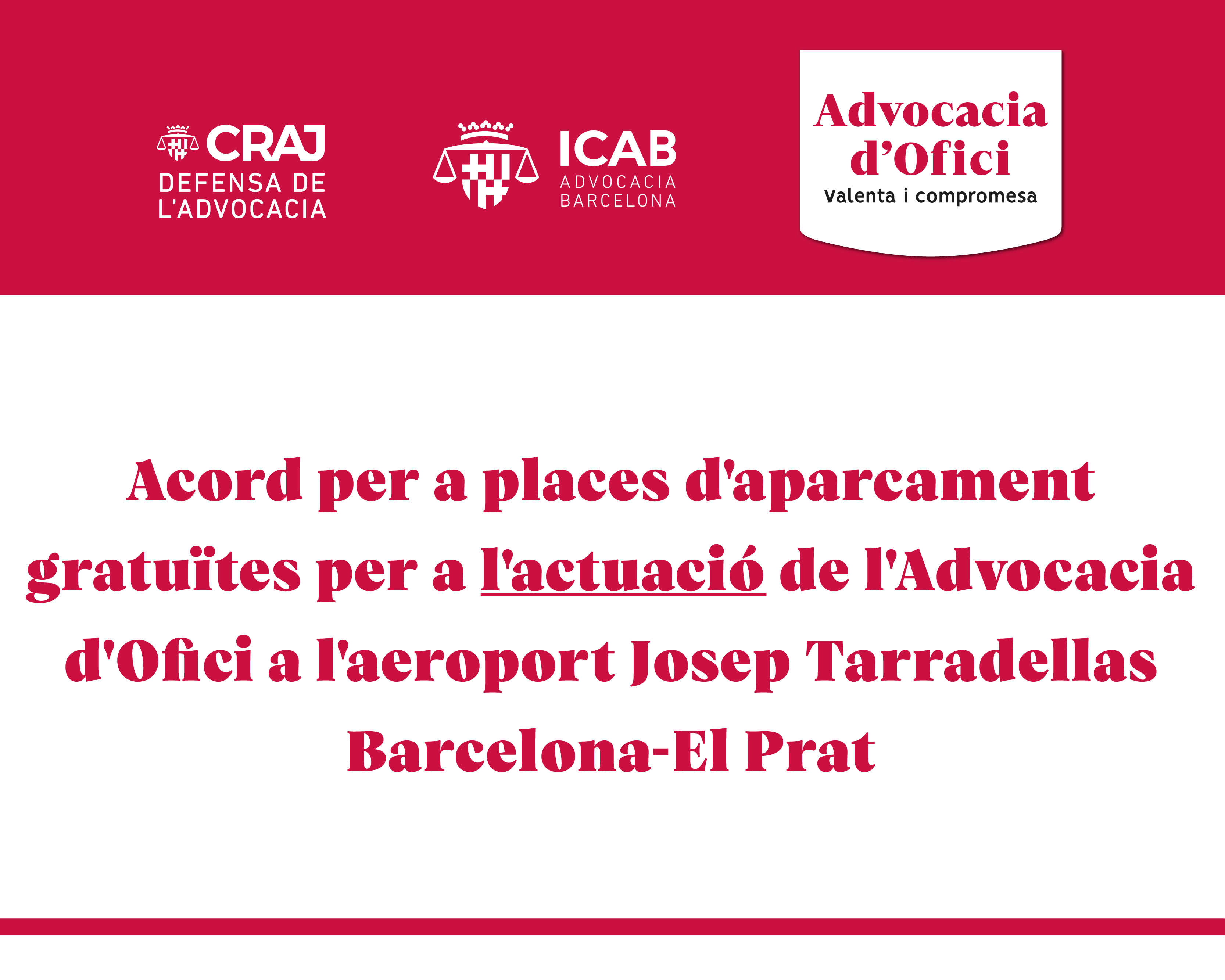 L’ICAB aconsegueix un acord per disposar de places d'aparcament gratuïtes per a l'actuació de l'advocacia d'Ofici a l'aeroport Josep Tarradellas Barcelona-El Prat