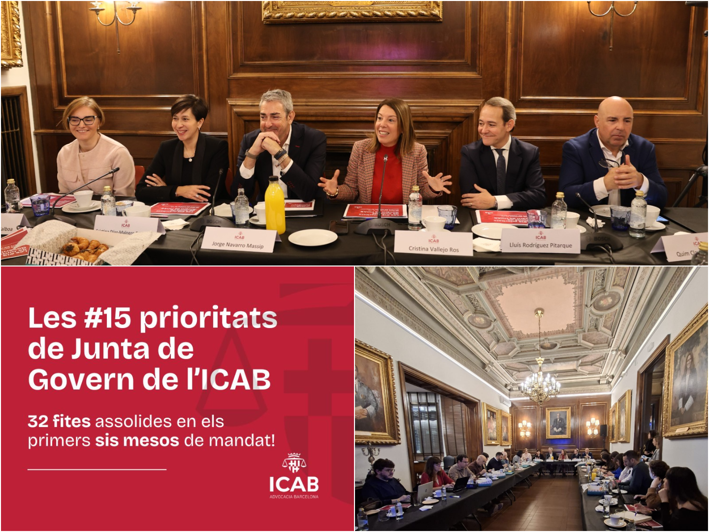 La Junta de Govern de l’ICAB fa balanç dels primers sis mesos de mandat: 32 fites assolides en 15 àmbits estratègics
