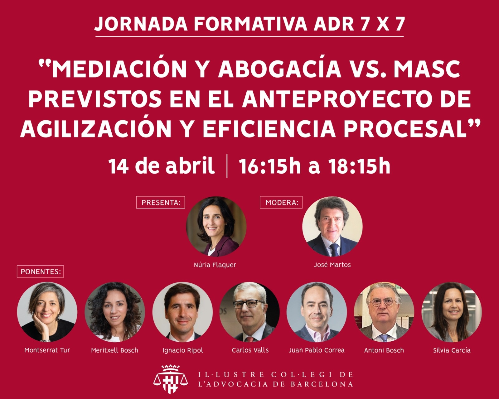 • Sílvia García. Abogada y mediadora. Para hablar de cláusulas mixtas ADR y de la transformación de los despachos de abogacía tradicional en despachos multidoor para una mejor adaptación al Anteproyecto de Eficiencia Procesal.