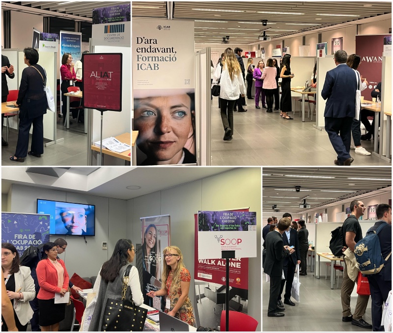 Además, cabe destacar que la Feria de la Ocupación ha contado con tres stands del ICAB. Desde el stand de Formación se ha dado a conocer la amplia oferta de másteres, posgrados, formación continua e internacional y el Postgrado de la Escuela de Práctica Jurídica que imparte el ICAB. También se ha informado de las condiciones especiales que tienen los y las estudiantes del Grado de Derecho de los últimos cursos para asociarse al ICAB si materializaban la inscripción durante este evento. Desde la Biblioteca, además, de los servicios propios, se ha hecho difusión a los visitantes del stand del proyecto ALIAT, impulsado conjuntamente por la Biblioteca colegial y el Observatorio para la Transición a la Ciberjusticia, para proyectar el ejercicio de la abogacía en el entorno digital y el big data. Desde el stand del SOOP se han mostrado los servicios que ofrece, especialmente en materia de asesoramiento sobre la creación o consolidación de la empresa o despacho y sobre el funcionamiento de la Bolsa de Trabajo del ICAB.