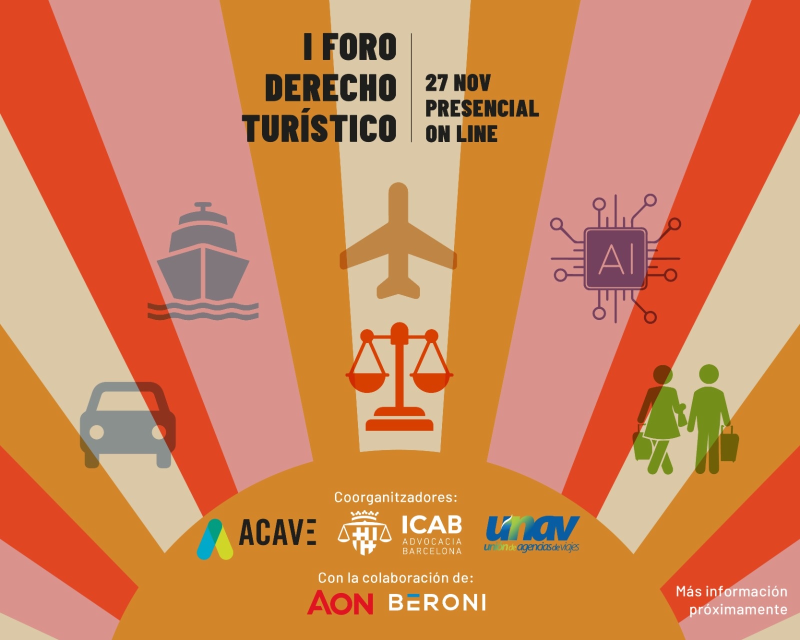 En el I Foro Derecho Turístico 2024, organizado por el Ilustre Colegio de la Abogacía de Barcelona (ICAB) junto con la Asociación Corporativa de Agencias de Viajes Especializadas (ACAVE) y la Unión Empresarial de Agencias de Viajes UNAV, varios expertos analizarán la actualidad y los retos actuales en el ámbito del Derecho Turístico.