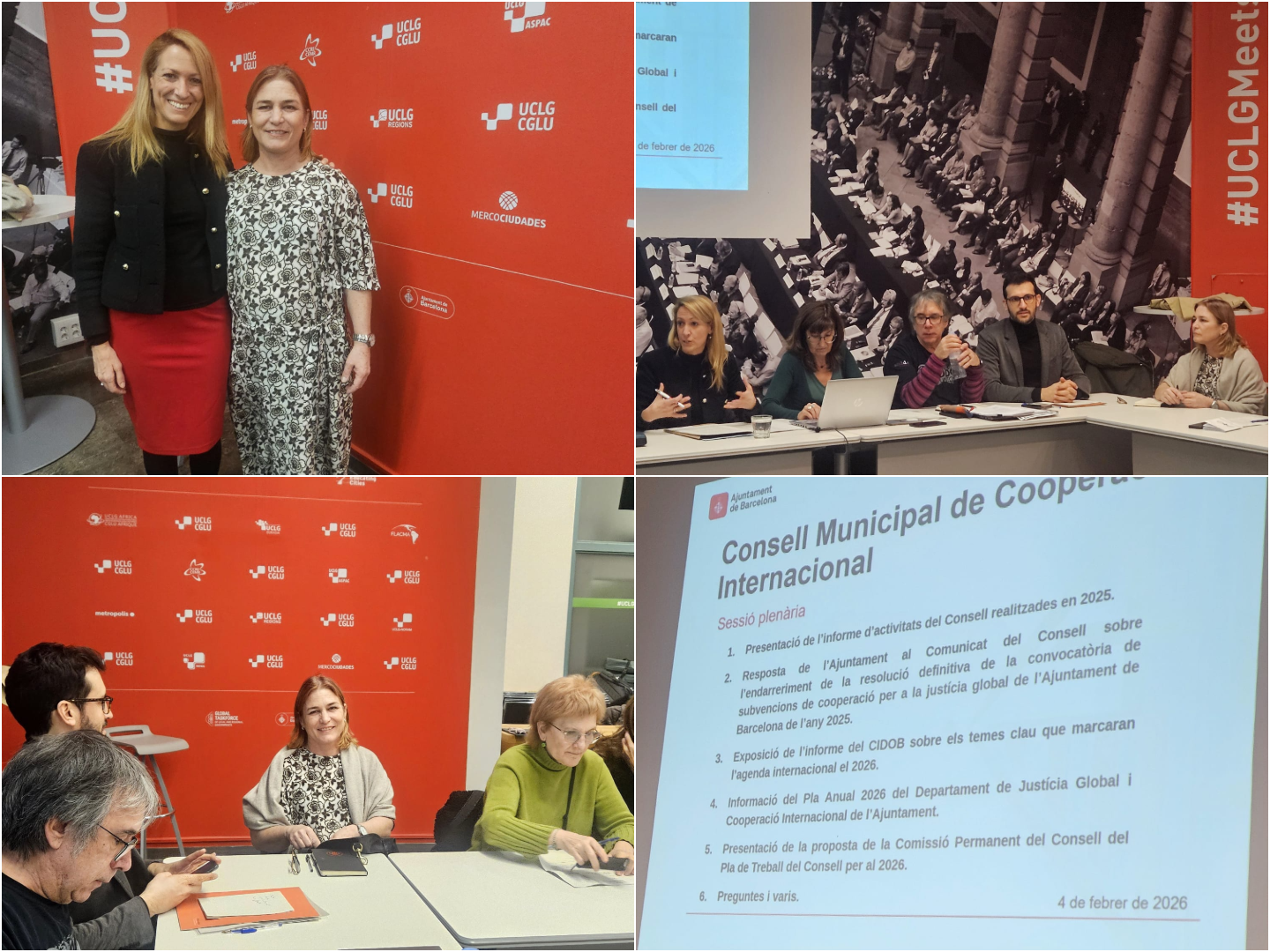 La diputada de la Junta de Gobierno del Ilustre Colegio de la Abogacía de Barcelona Marta Domènech ha participado este miércoles, 4 de febrero de 2026, en la reunión plenaria del Consejo Municipal de Cooperación Internacional, celebrada en la Sala CGLU del Ayuntamiento de Barcelona. Ha encabezado la reunión la presidenta del Consejo y segunda teniente de alcaldía, Mª Eugènia Gay.