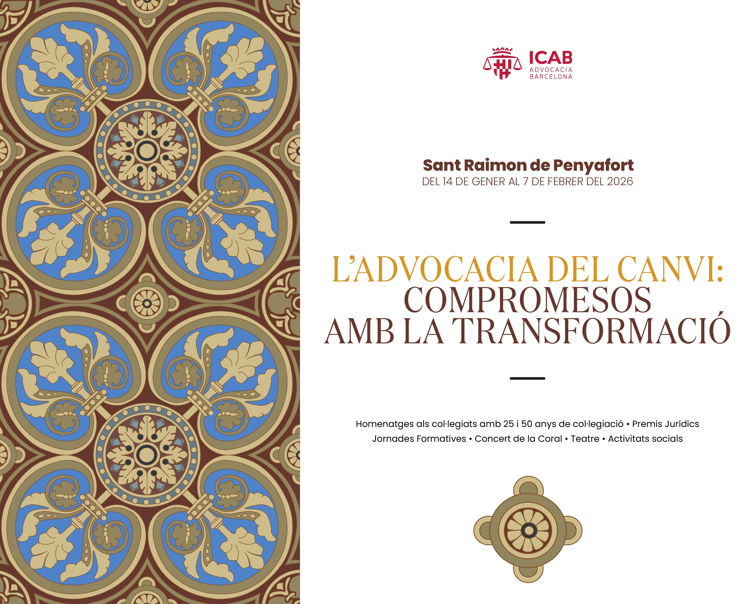 Amb el lema “L’advocacia del canvi: compromesa amb la transformació", l’Il·lustre Col·legi de l’Advocacia de Barcelona (ICAB) ultima els detalls per a la celebració de la festivitat de Sant Raimon de Penyafort 2026.