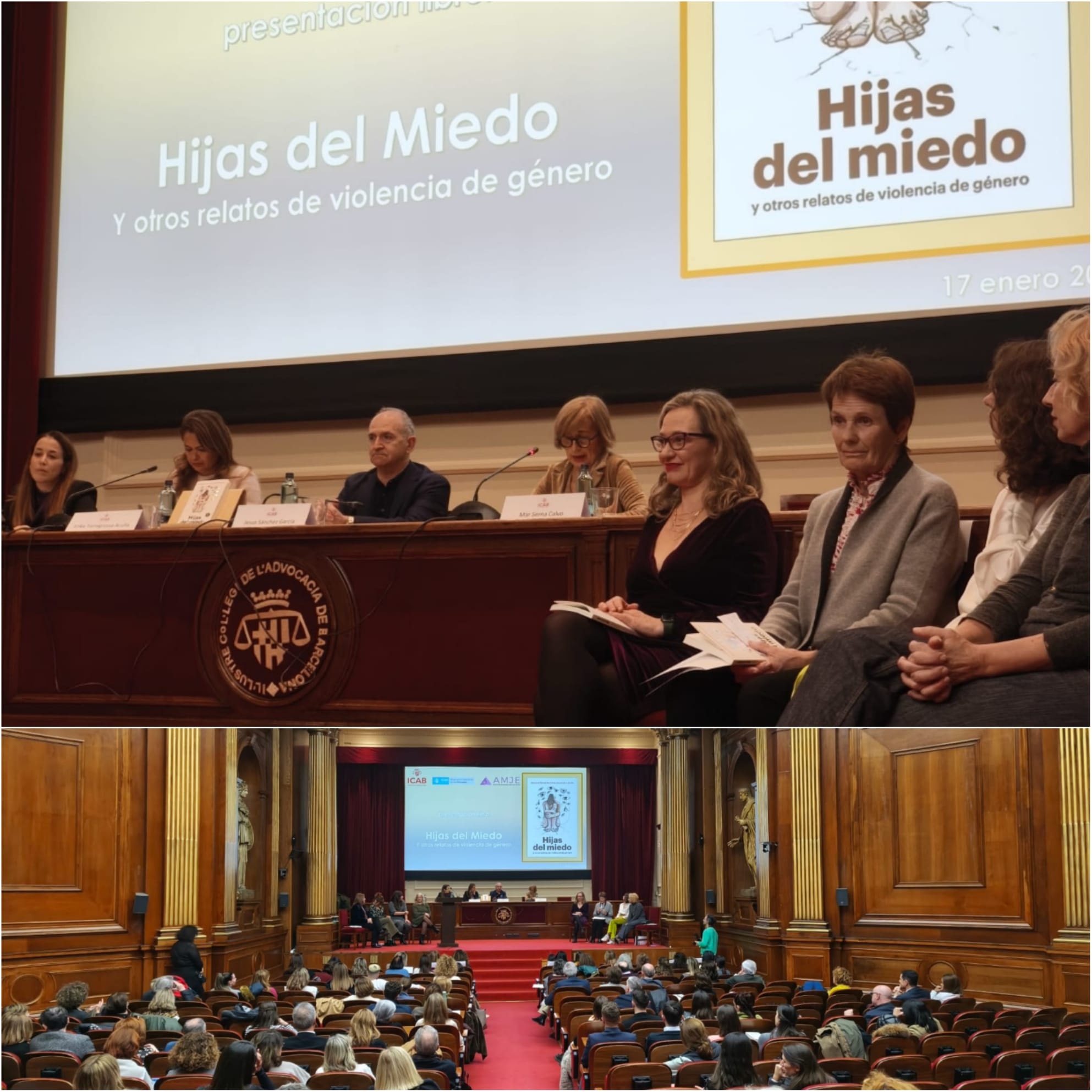 El Salón de Actos del Colegio de la Abogacía de Barcelona (ICAB) ha acogido este viernes, 17 de enero de 2025, el acto de presentación del libro “Hijas del Miedo y otros relatos de violencia de género”, de la Asociación Mujeres Jueces de España (AMJE).