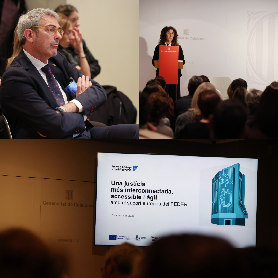 Durante el acto se han presentado los proyectos de transformación digital impulsados con el apoyo del Fondo Europeo de Desarrollo Regional (FEDER) de la Unión Europea, que han permitido modernizar diversos servicios de la Administración de justicia, con iniciativas como el nuevo sistema de registro y tramitación electrónica, el Sistema de Información de Ejecución Penal de Catalunya y el despliegue dele Expediente Judicial Electrónico (ejcat) y del tramitador procesal e-justícia.cat.