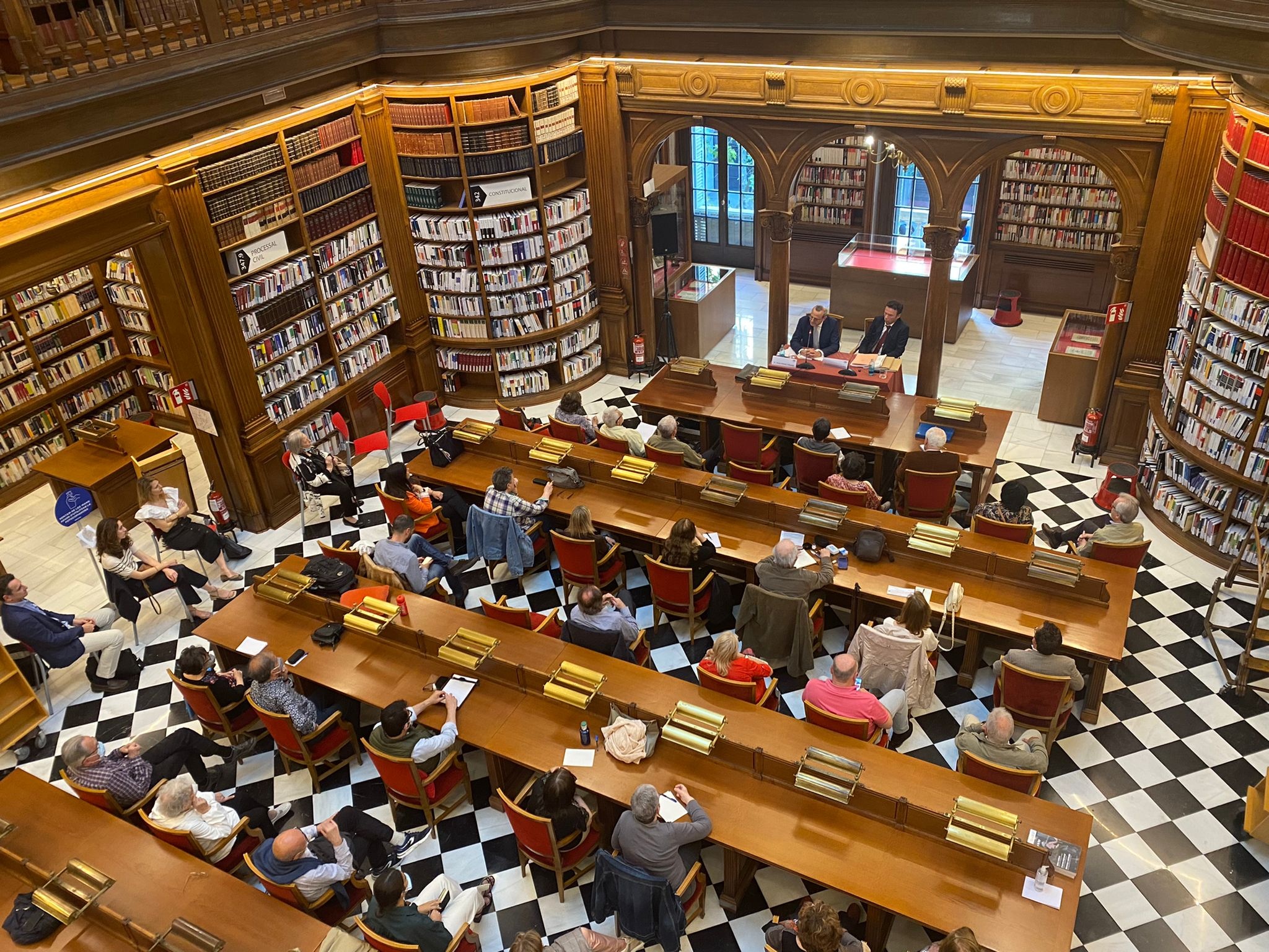 Unas 50 personas han asistido este martes, 10 de mayo de 2022, por la tarde, al acto de presentación de la obra "Herencias y donaciones. Descubra cómo pagar menos impuestos y gastos", que ha tenido lugar en la Sala de Lectura de la Biblioteca del Colegio de la Abogacía de Barcelona.