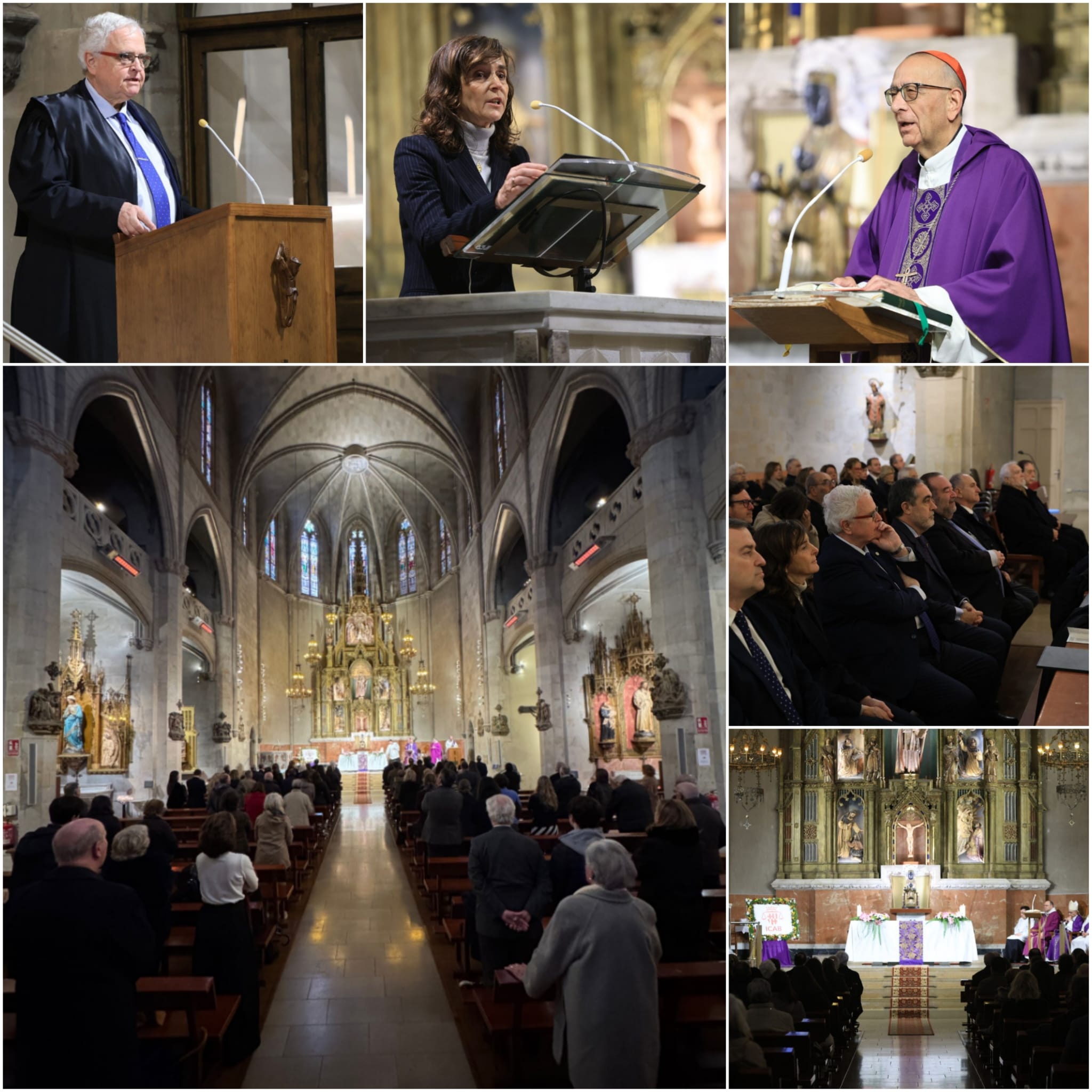 En recuerdo de los abogados y abogadas colegiados/as en el ICAB que nos han dejado durante el año 2024, se ha celebrado este viernes, 14 de marzo de 2025, una misa en la parroquia de Sant Raimon de Penyafort oficiada por Joan Josep Omella, cardenal arzobispo de Barcelona.