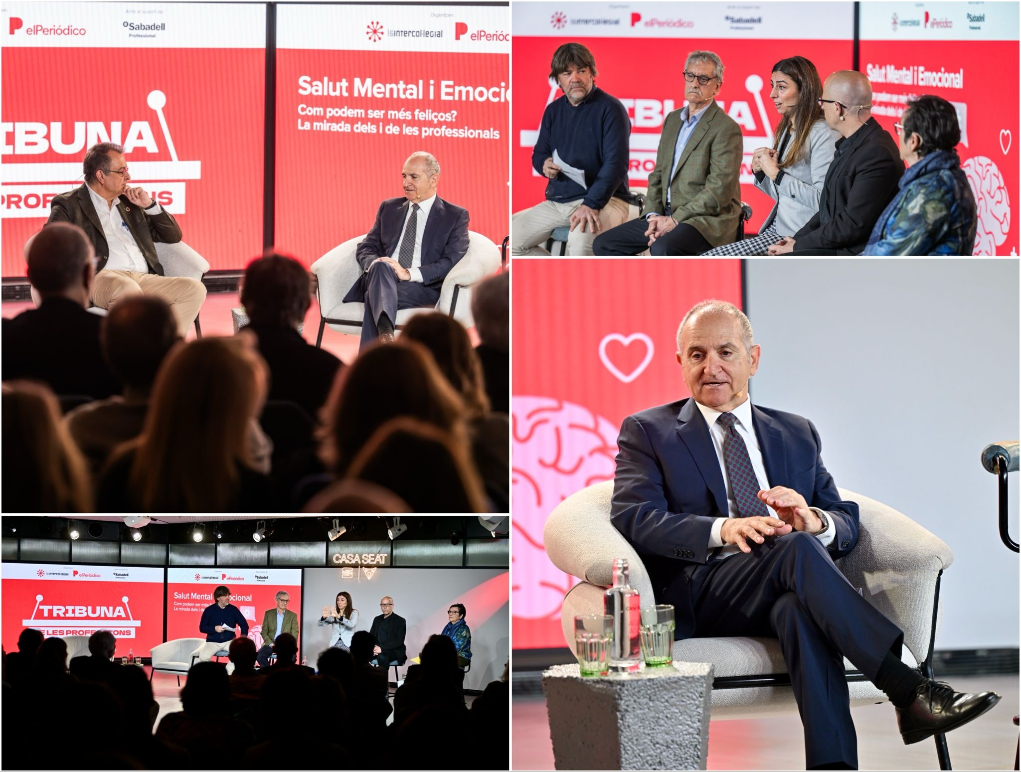 El acto ha contado con una mesa redonda para tratar la salud mental y emocional desde una perspectiva global moderada por Fidel Masreal, periodista especializado en Salud Emocional, en la que han participado Guillermo Mattioli, decano del Colegio Oficial de Psicología de Cataluña (COPC) y psicólogo especialista en Psicología Clínica; Sònia Hernández-Montaño, arquitecta especializada en Arquitectura Saludable y Bioconstrucción y miembro de la Junta de la Agrupación de Arquitectos por la Sostenibilidad del Colegio de Arquitectos de Cataluña (COAC); Carme Panchón, pedagoga, miembro de la Junta de Gobierno del Colegio de Doctores y Licenciados en Filosofía y Letras y en Ciencias de Cataluña (CDL) y de la Comisión de Deontología del Colegio Oficial de Pedagogía de Cataluña (COPEC);y Alejandro Marieges, enfermero especialista en Salud Mental y vocal de Salud Mental del Colegio Oficial de Enfermeras y Enfermeros de Barcelona (COIB).